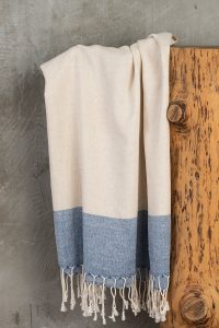 The peshtemal towel’s fabric is made of 100% cotton in manually operated looms in Turkey.