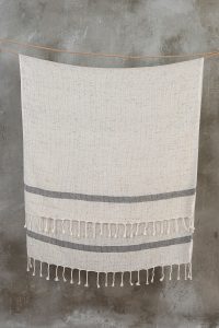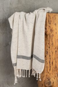 The peshtemal towel’s fabric is made of 100% cotton in manually operated looms in Turkey.